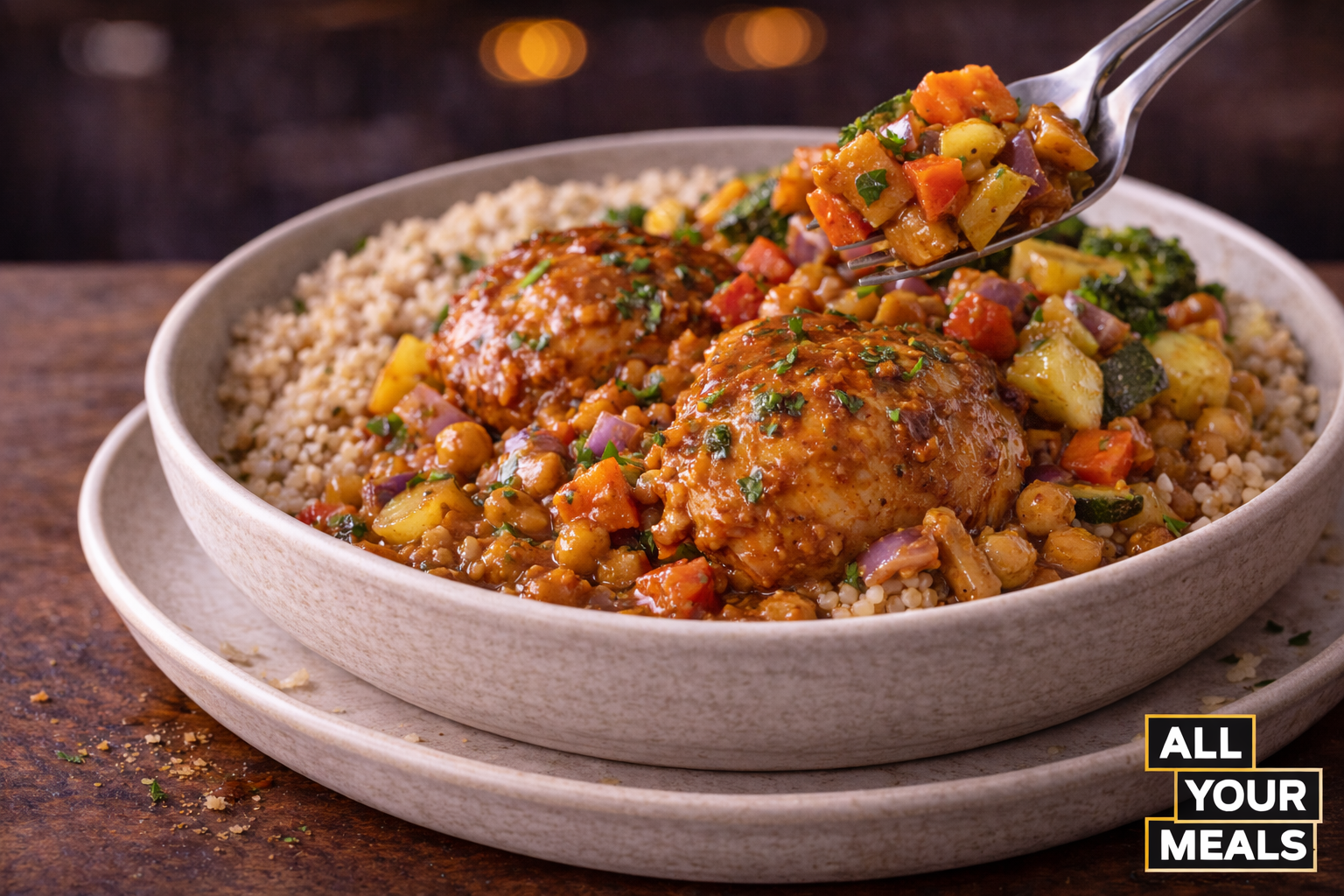 Moroccan flavoured chickpeas served with couscous