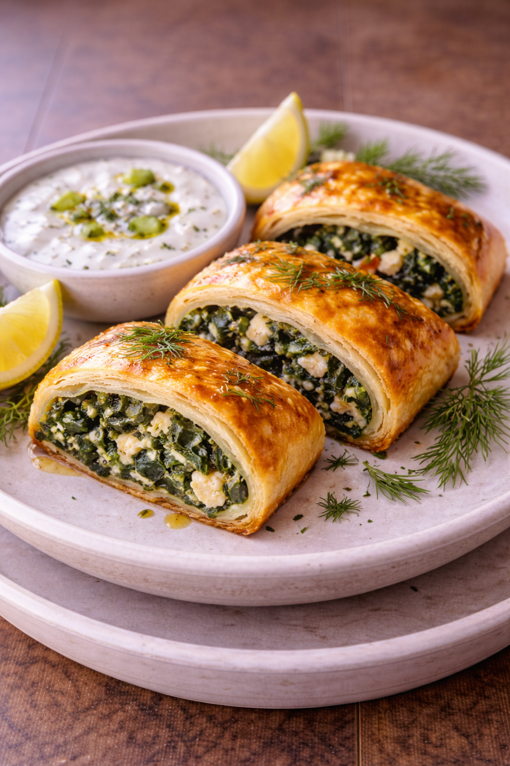 Golden, flaky, and irresistibly savory. These Spinach & Feta Rolls are filled with a fragrant blend of tender spinach, creamy feta, slow-sautéed onions, fresh garlic, and aromatic dill, all wrapped in buttery puff pastry. Baked until perfectly crisp and finished with a scattering of toasted sesame seeds, each bite delivers layers of texture and rich, comforting flavor.